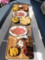 We will enjoy a long tropical brunch on board,which includes: seasonal fruit , pizza, fruit tart ,vegetarian focaccia, guacamole, Yellow fin Tuna carpacho ,empanadas other delicacies of the day.